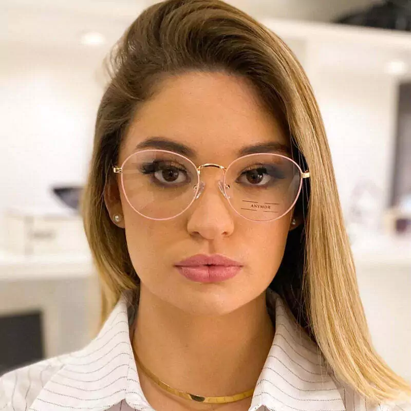 A armação de grau Manuela em metal dourado é uma peça moderna e casual, possui design redondo com tom rosa na frontal, tornando a peça perfeita para quem busca um óculos casual mas com um toque de criatividade.