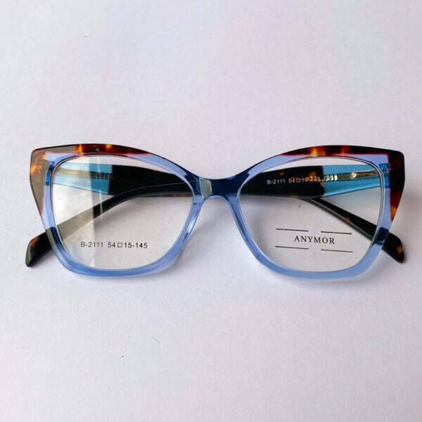 A armação de grau Vivi na cor azul é uma peça estilosa e moderna, sua frontal possui estampa animal print na parte superior e suas hastes mais largas trazem a mesma proposta de cor, tornando a peça perfeita para quem busca um óculos elegante.