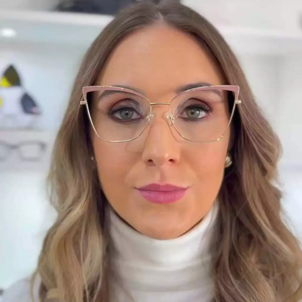 A armação de grau Giovana em metal dourado é uma peça com design gatinho, projetada para o alto trazendo um olhar mais sensual e marcado, sua frontal possui detalhes na cor rosa dando um toque de delicadeza para a peça.