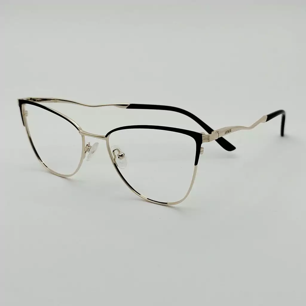 A armação de grau Letícia em metal dourado é um óculos com design gatinho que são perfeitos para todos os tipos de rosto, uma vez que esse tipo de armação consegue equilibrar os diferentes ângulos da face, sua frontal possui detalhes na cor preto e suas hastes possuem uma ondulação dando um toque de elegância para a peça.