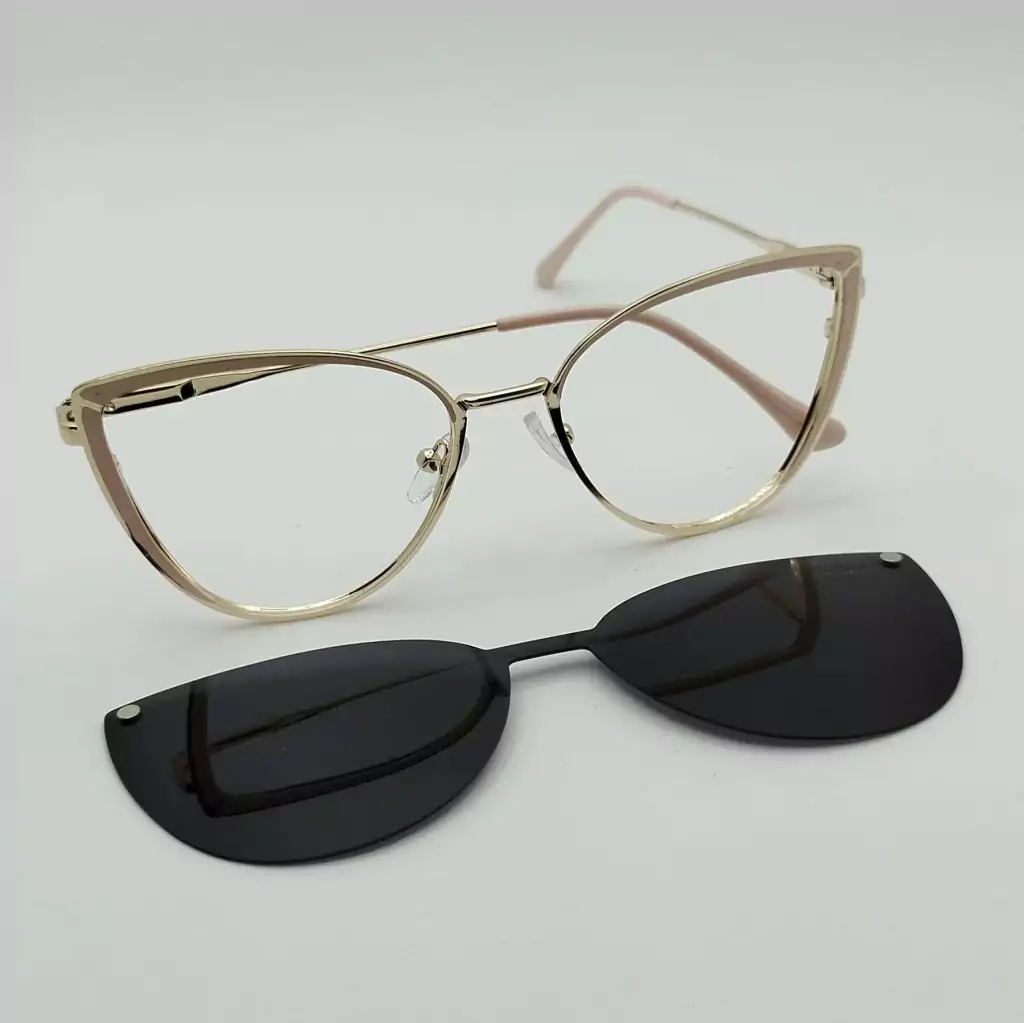 Essa armação acompanha o CLIPON, acessório que permite encaixar lentes de sol sobre a armação, tornando o modelo 2 em 1. Uma opção prática e versátil para quem usa óculos de grau e quer ter óculos de sol na mesma peça.