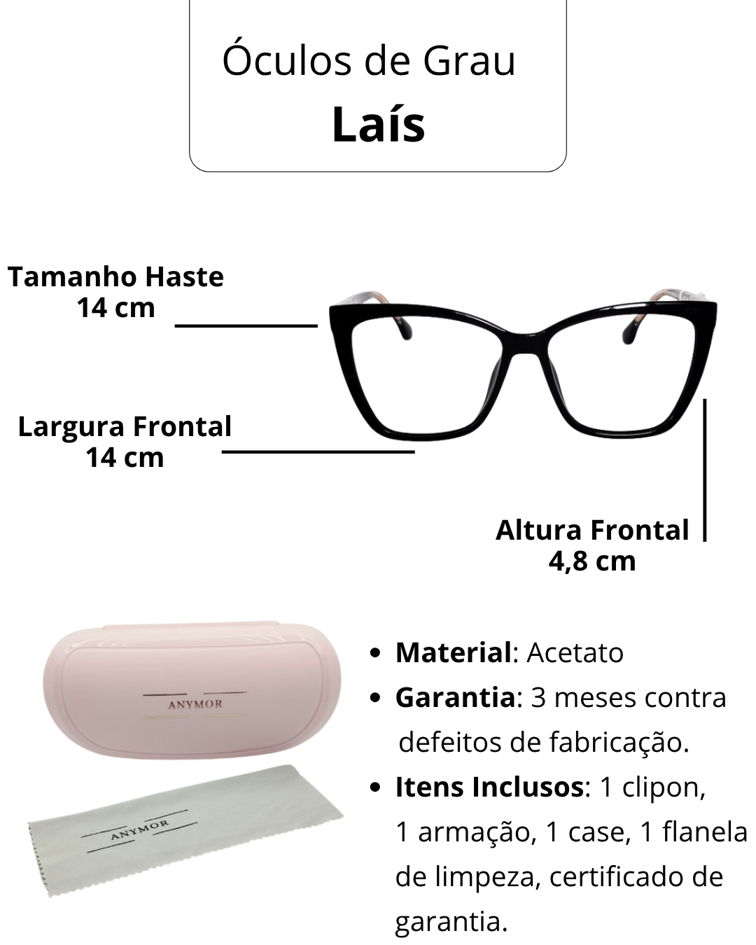 * As armações de grau não acompanham lentes de grau; caso você precise da lente com o seu grau, acesse nosso menu - lentes.