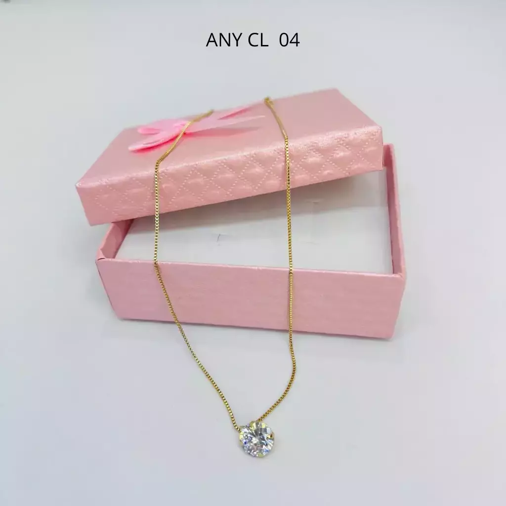 Corrente veneziana c/ pingente ponto de luz, pedra zircônia 9 mm diâmetro.