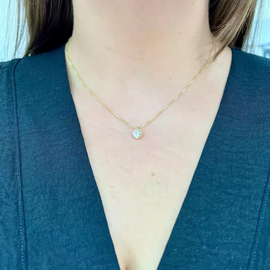Corrente veneziana c/ pingente ponto de luz, pedra zircônia 7 mm diâmetro.