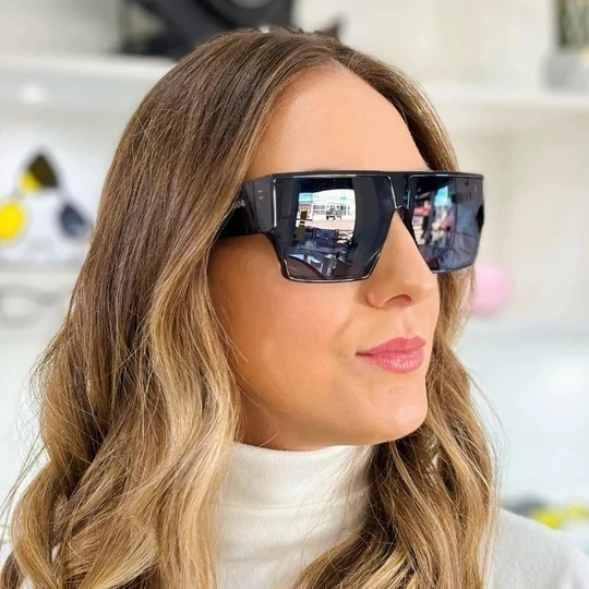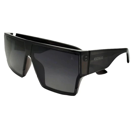 O óculos de sol Maldivas modelo máscara na cor preto é uma peça moderna e bem imponente, sua frontal em linhas retas e suas hastes largas tornam a peça perfeita para quem busca um óculos luxuoso e marcante.
