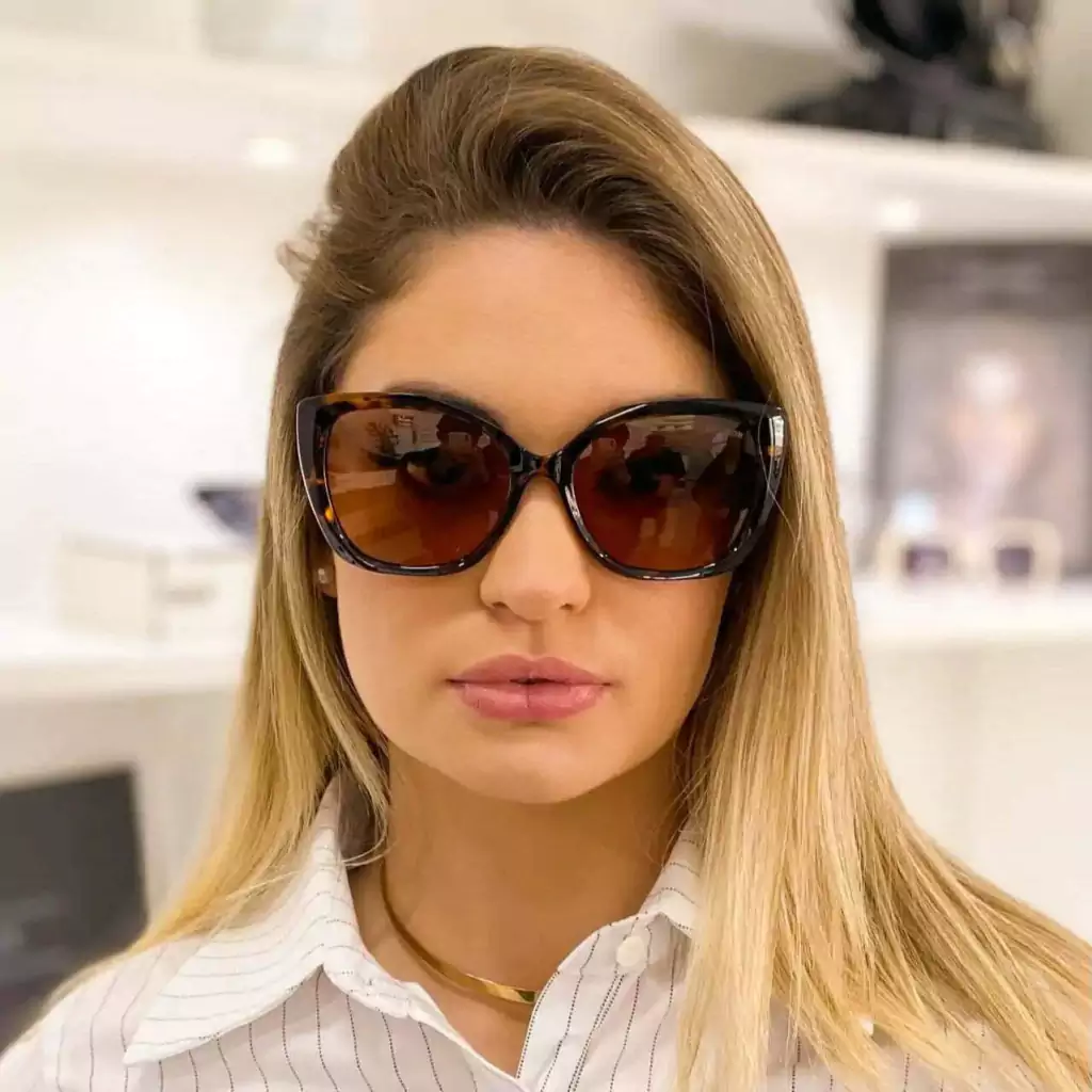 O óculos de sol Veneza na cor animal print é uma peça tradicional, suas hastes combinam o acetato de forma mais marcante com o metal dourado, tornando a peça perfeita para quem busca um óculos convencional mas com um toque requintado.
