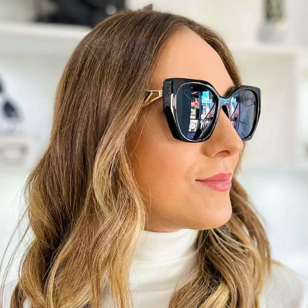 O óculos de sol Santorini na cor preto é uma peça sofisticada e elegante, sua frontal possui silhuetas geométricas e as hastes trabalhadas delicadamente em um elemento de metal, tornando a peça perfeita para quem busca um óculos cheio de estilo e inovação.